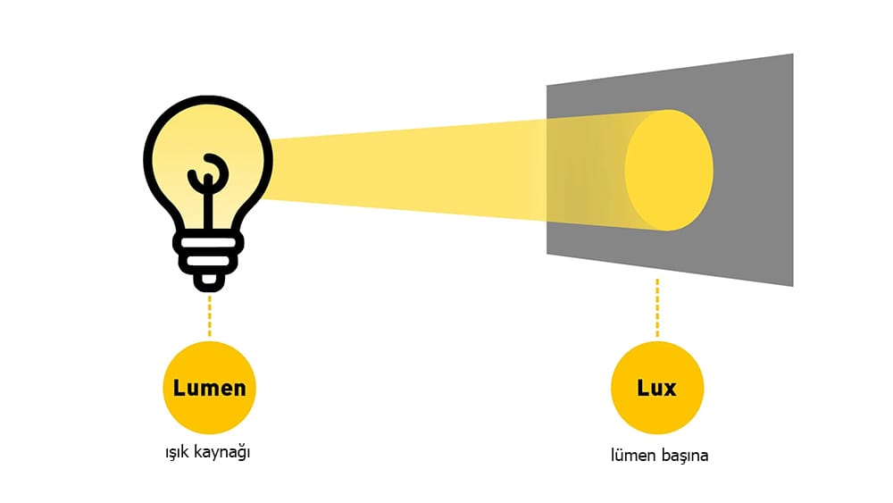 - Lux: Bu ışığın zemine, masaya, ürüne veya çalışma alanına düşen miktarı