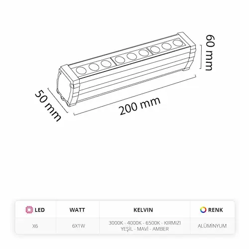 6x1W LED Wallwasher Duvar Boyama Armatürü | Cephe Aydınlatma