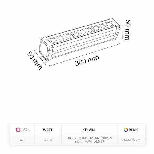 9x1W LED Wallwasher Duvar Boyama Armatürü Özellikleri